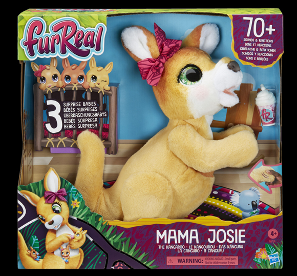 Mama Josie ist ein interaktives Spielzeug-Känguru und so liebenswert wie ihre süßen kleinen Babys! Eines der Babys ist ein Junge, das andere ein Mädchen und das dritte… eine Überraschung! Das Geheimnis kann nur durch Öffnen der Packung gelüftet werden.