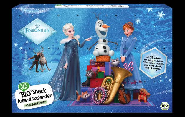 Mit dem Bio Snack Adventskalender Die Eiskönigin von PURE&FUN wird die Adventszeit mit Elsa, Anna und Olaf Tag für Tag zu